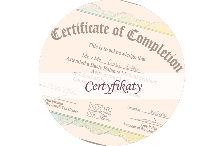 Ukończyłam 2-letnią Akademię Akupunktury Compleo oraz liczne kursy z akupunktury, dietetyki chińskiej, ziół zachodnich w medycynie chińskiej, Gua Sha, akupunktury kosmetycznej, japońskiego liftingu twarzy i wiele innych. Moimi nauczycielami i mentorami są światowej sławy wykładowcy w zakresie Medycyny Chińskiej, m.in.: Joan Duveen, Rani Ayal, Bartosz Chmielnicki, Prof. Sun Peilin, Aaron Zizov, Agnieszka Krzemińska.